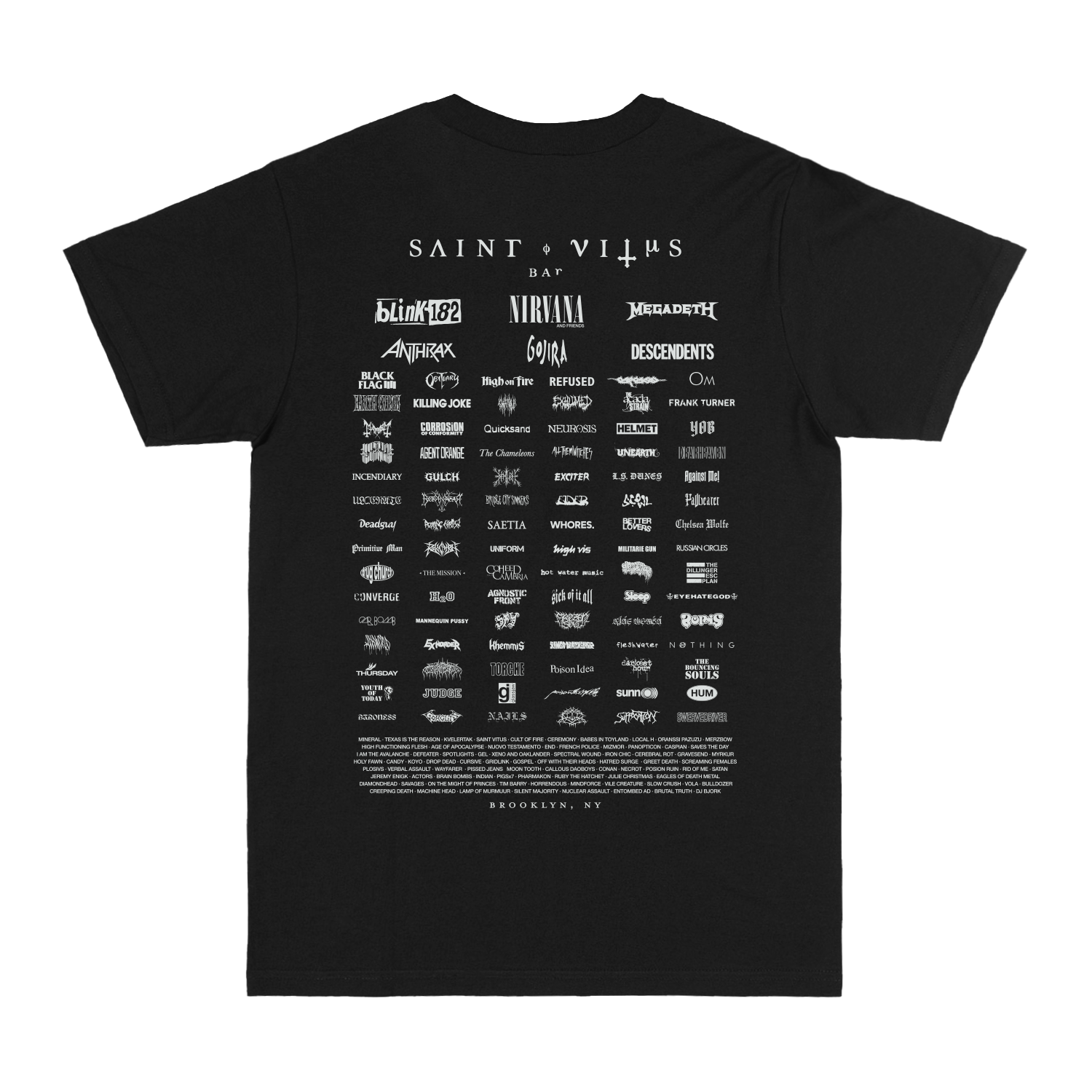 100% cotton unisex t-shirt with a retail fit featuring acts who graced our stage over the years with our classic logo.