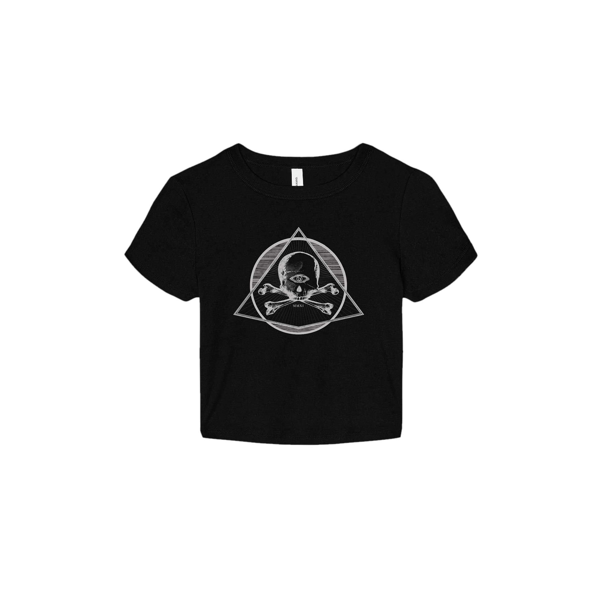 A 52% cotton / 48% Polyester black cropped baby women's tee featuring a Saint Vitus logo.
